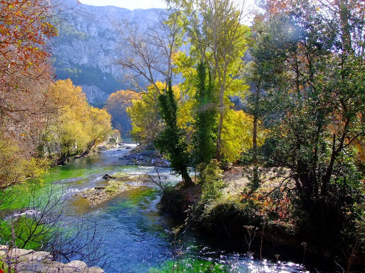 La petite rivière sauvage de l’Argens bordée de vignes se faufile dans les gorges du vallon Sourn, ou l’on peut se baigner.