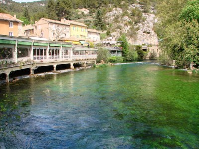 Picnic sur les rives de la Sorgue, une eau limpide et translucide à Fontaine de Vaucluse.
