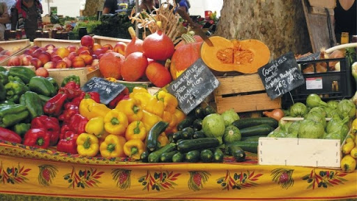 Au marché de Provence, je prends quelques tomates, un peu de basilic pour agrémenter notre prochain repas , un régal !!