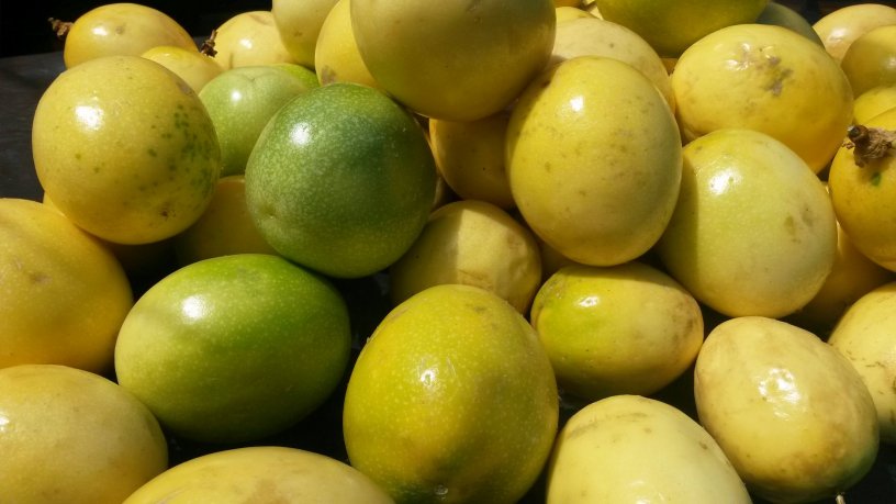Maracudja, fruit de caju… on en a mangé plein avec Tat en Guyane au marché de Cayenne. Il y a aussi la pomme rosa, papaye, pomelo (shadek), et sans oublier les citrons verts pour le petit ponch !