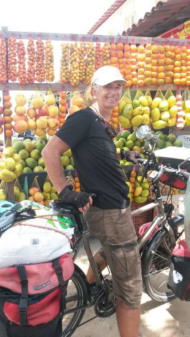 Je charge les sacoches de fruits délicieux qui sont les vitamines pour les jours à venir. ​