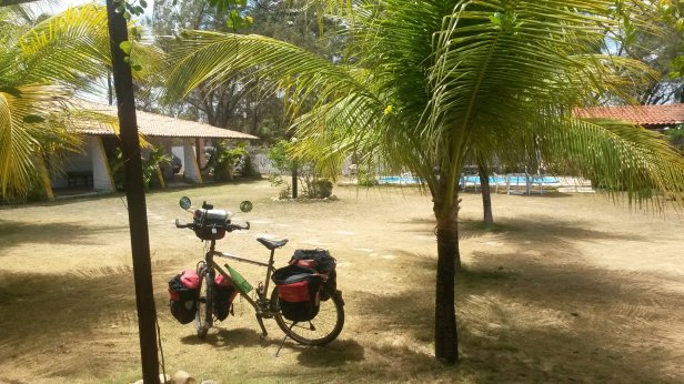 Fuyant Fortaleza, grande ville au sentiment d’insécurité,  je vous écris donc de Taiba. La chaleur, la fatigue musculaire, les nombreuses heures passées sur la selle et la transpiration du cuissard  me créant des échauffements. Je prends donc une pause de deux jours dans cette « POSADA DORO MARIE ». Ces deux sœurs sont totalement dévouées pour leurs clients. Le nom DORO MARIE sont les prénoms de leur père et mère décédés il y a fort longtemps.  Je tenais à les remercier en leur souhaitant une bonne continuité.