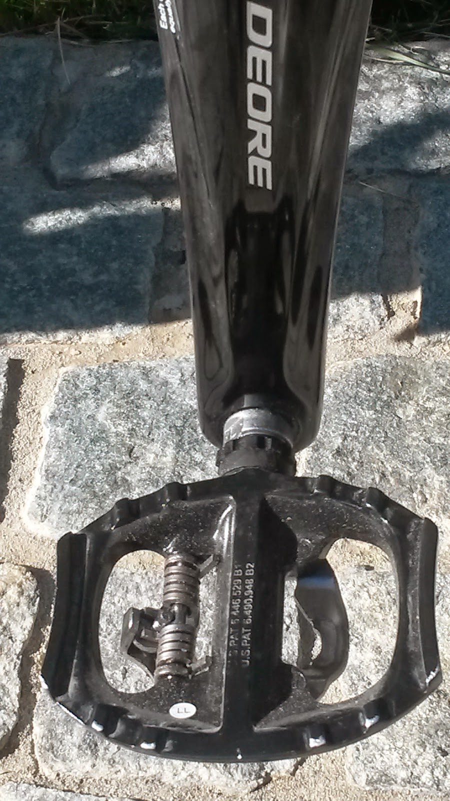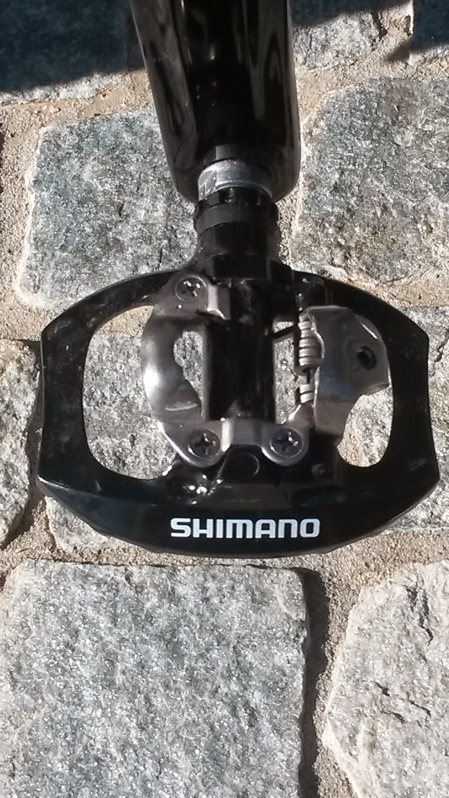 Les pédales mixte A 530 » Touring Shimano » avec une position pour s’accrocher avec des chaussures adaptées.