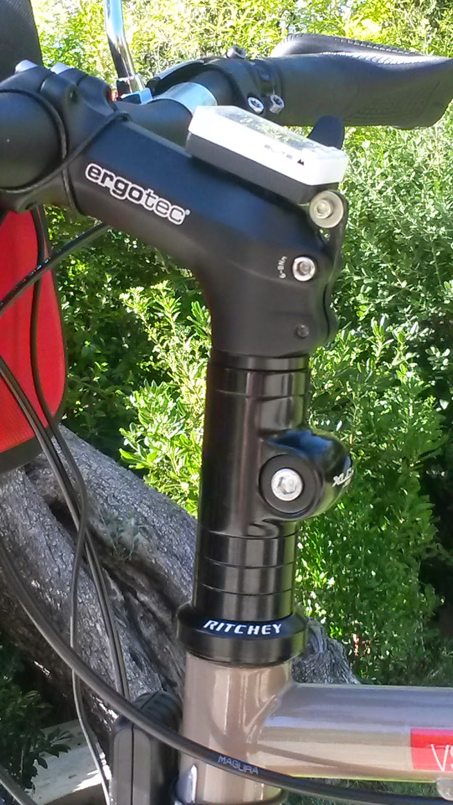 J’ai installé une rehausse de potence pour rouler le dos plus droit.