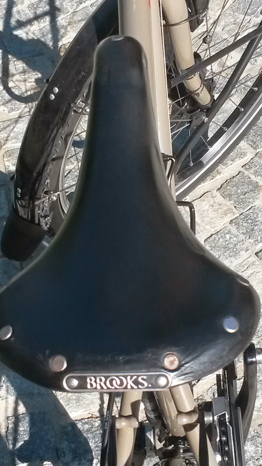 Selle » BROOKS » en cuir indispensable qui se moule à la position du pilote.